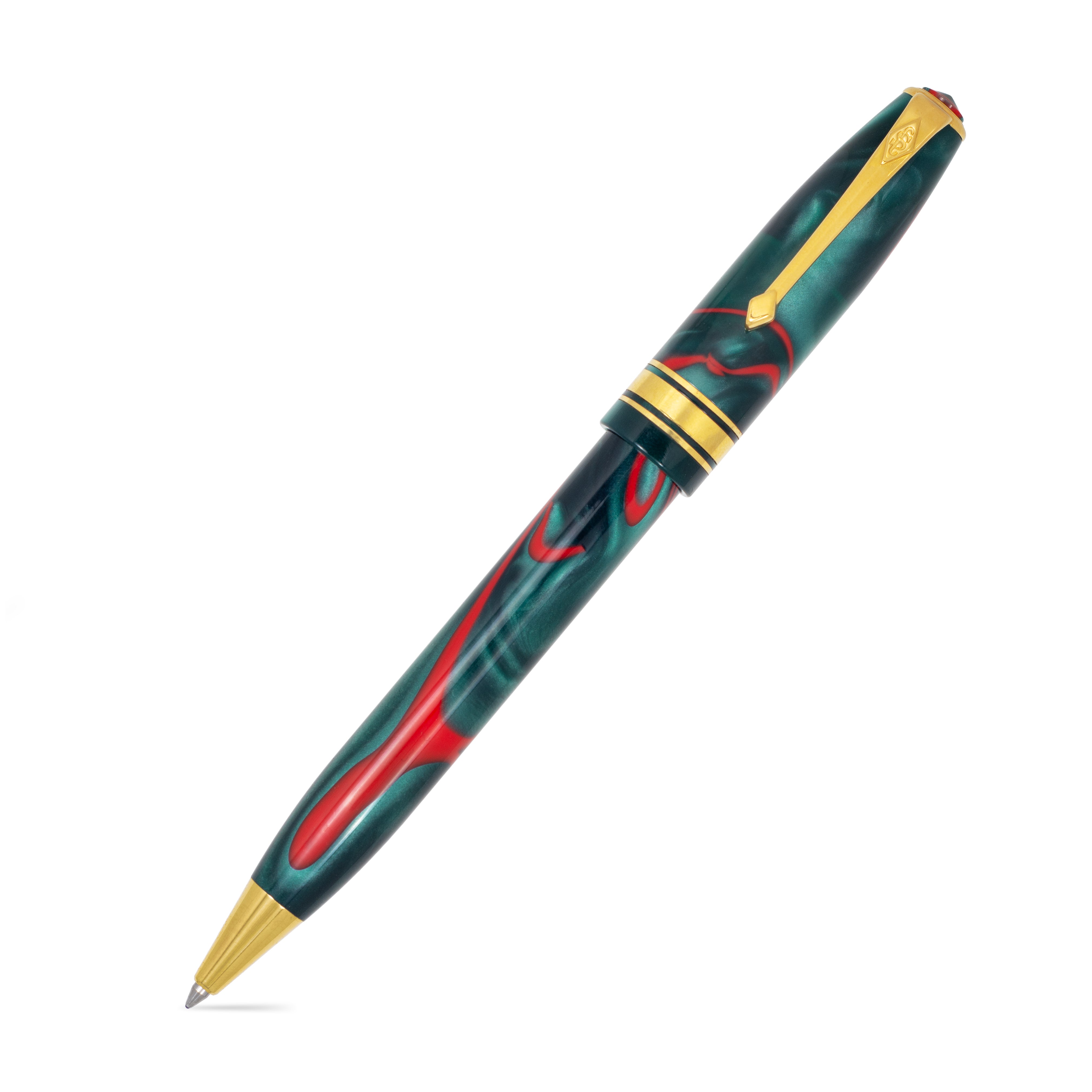 The Detection Club Pen, engraved with Agatha Christie and other greats, features a blood-red clip spacer and 'Eric the Skull' atop the cap.