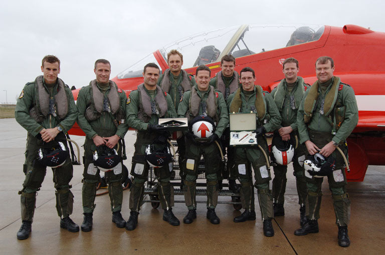 The 2006 Red Arrows team holding the Conway Stewart ‘Red Arrow’