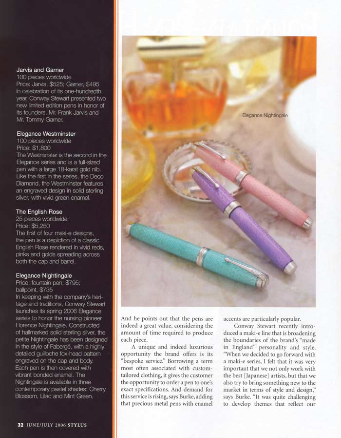 Conway Stewart presentó recientemente una línea maki-e que está ampliando los límites de la personalidad y el estilo "hecho en Inglaterra" de la marca. "Cuando decidimos seguir adelante con una serie maki-e, sentí que era muy importante que no sólo trabajáramos con los mejores artistas [japoneses], sino que también intentáramos traer algo nuevo al mercado en términos de estilo. y diseño", afirma Burke.
