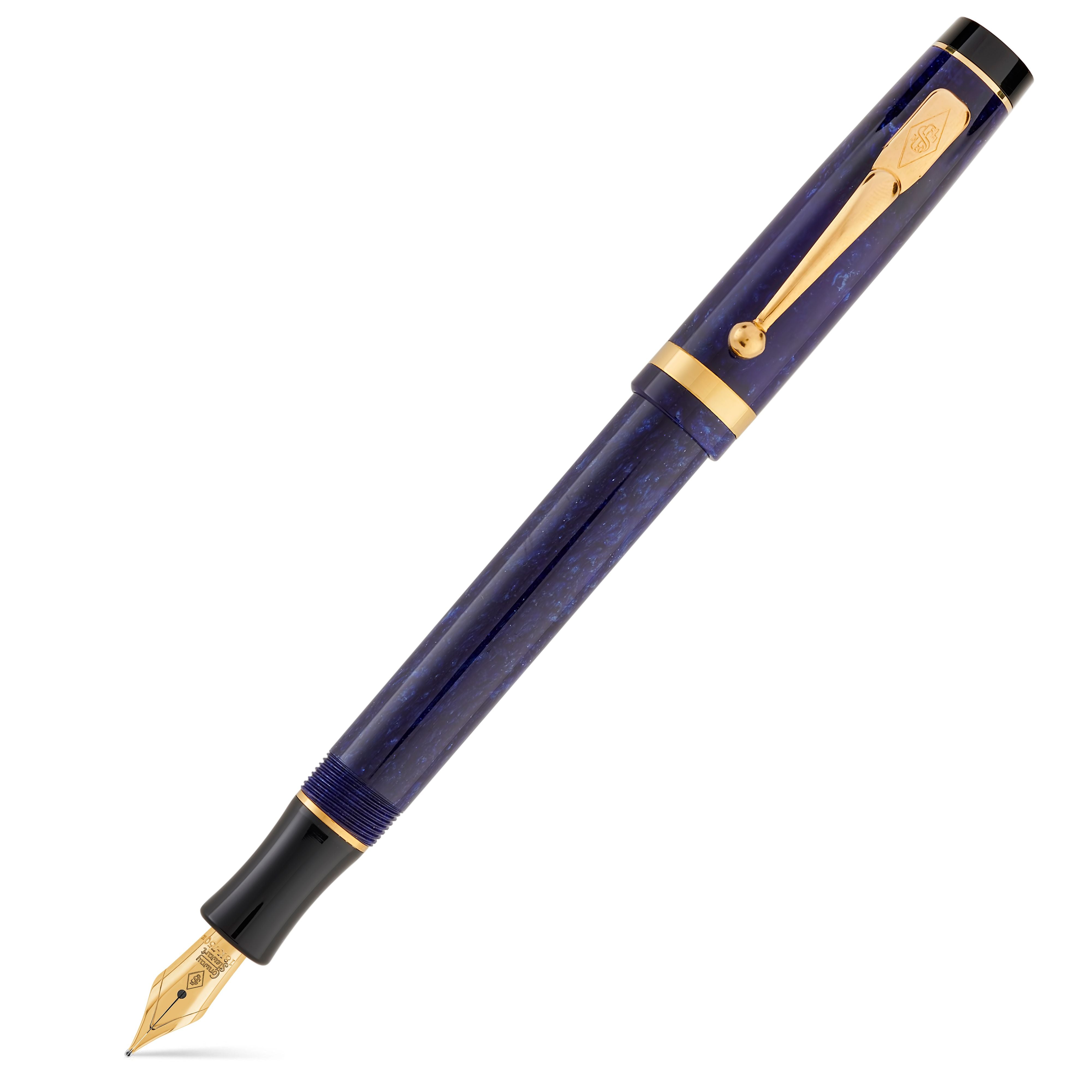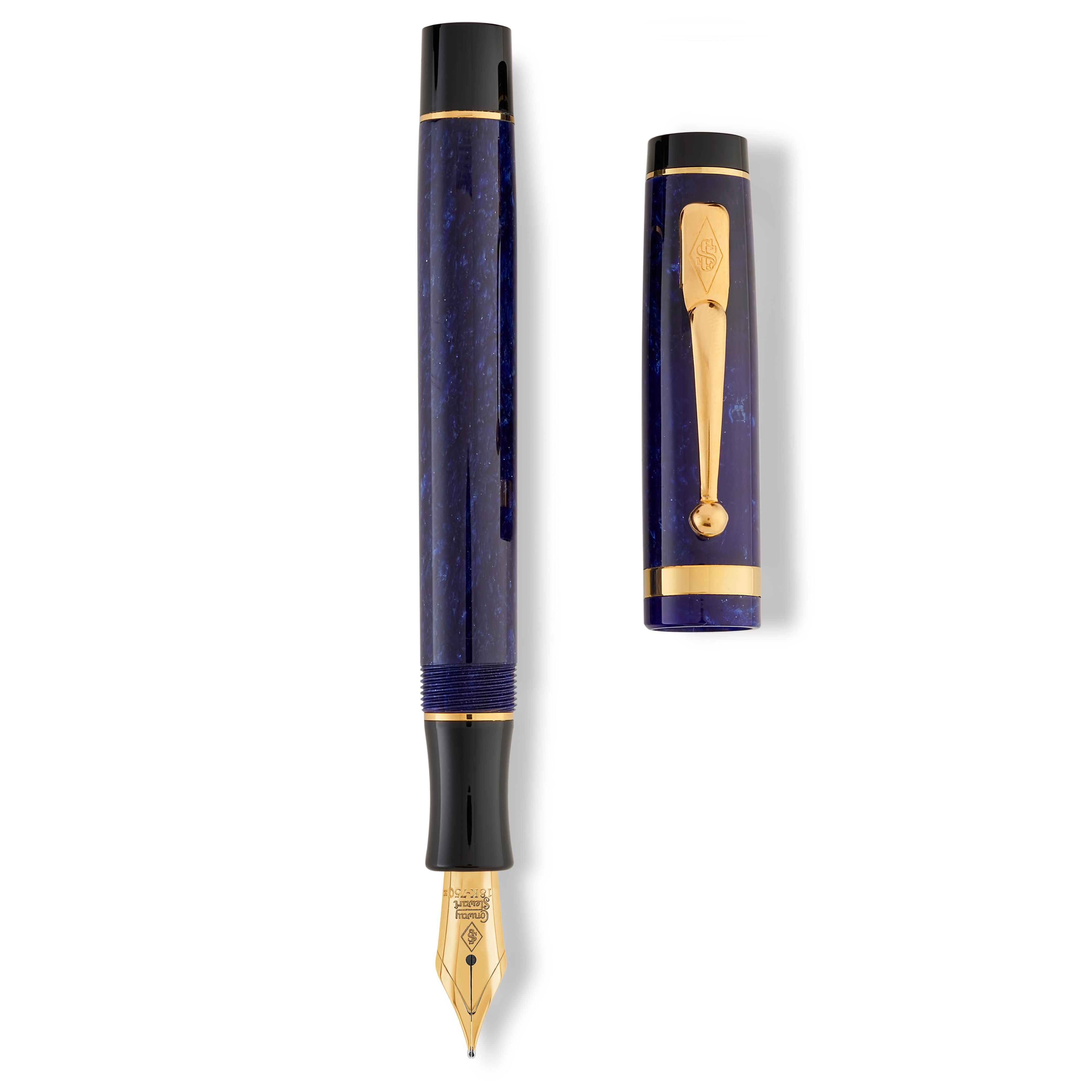 Présentation du Conway Stewart Duro Blue Stardust, un superbe stylo en édition limitée avec un fond bleu moucheté profond et une seule large bande en or 9 carats qui peut être gravée avec vos initiales. Les lignes intemporelles et le design britannique classique du Duro en font un stylo apprécié pour un usage professionnel quotidien, et ses ornements en or 9 carats ajoutent une touche de luxe. Chaque stylo est livré dans une boîte de présentation en similicuir noir avec un certificat d'authenticité, un guide de l'utilisateur et un chiffon de polissage. Seulement 12 éditions limitées sont disponibles, faisant du Duro Blue Stardust un instrument d'écriture vraiment unique.