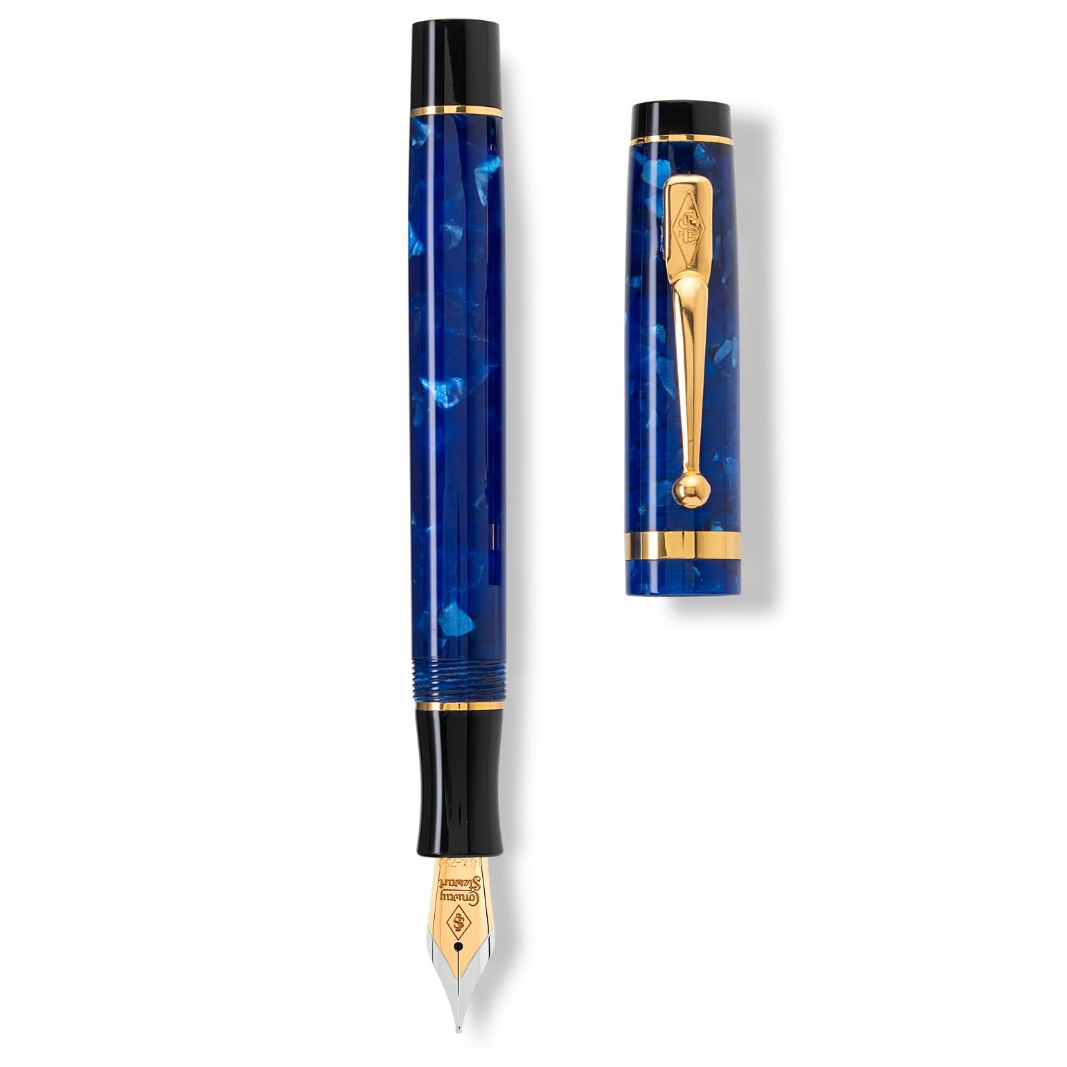 Présentation du Conway Stewart Duro Marine Blue, un stylo en édition limitée avec une belle résine de marbre bleu inspiré par la magie de la mer. Avec une bande en or 9 carats et trois anneaux fins, ce stylo est un classique intemporel de 1924, mais reste aussi contemporain et pertinent aujourd'hui. Il a la taille parfaite pour un usage professionnel quotidien et est livré avec une boîte de présentation en similicuir noir d'origine, un certificat d'authenticité, un guide d'utilisation et un chiffon de polissage anti-ternissement. Seulement 25 de ces superbes stylos sont disponibles, ce qui en fait un objet vraiment unique et à collectionner pour tout amateur de stylos.