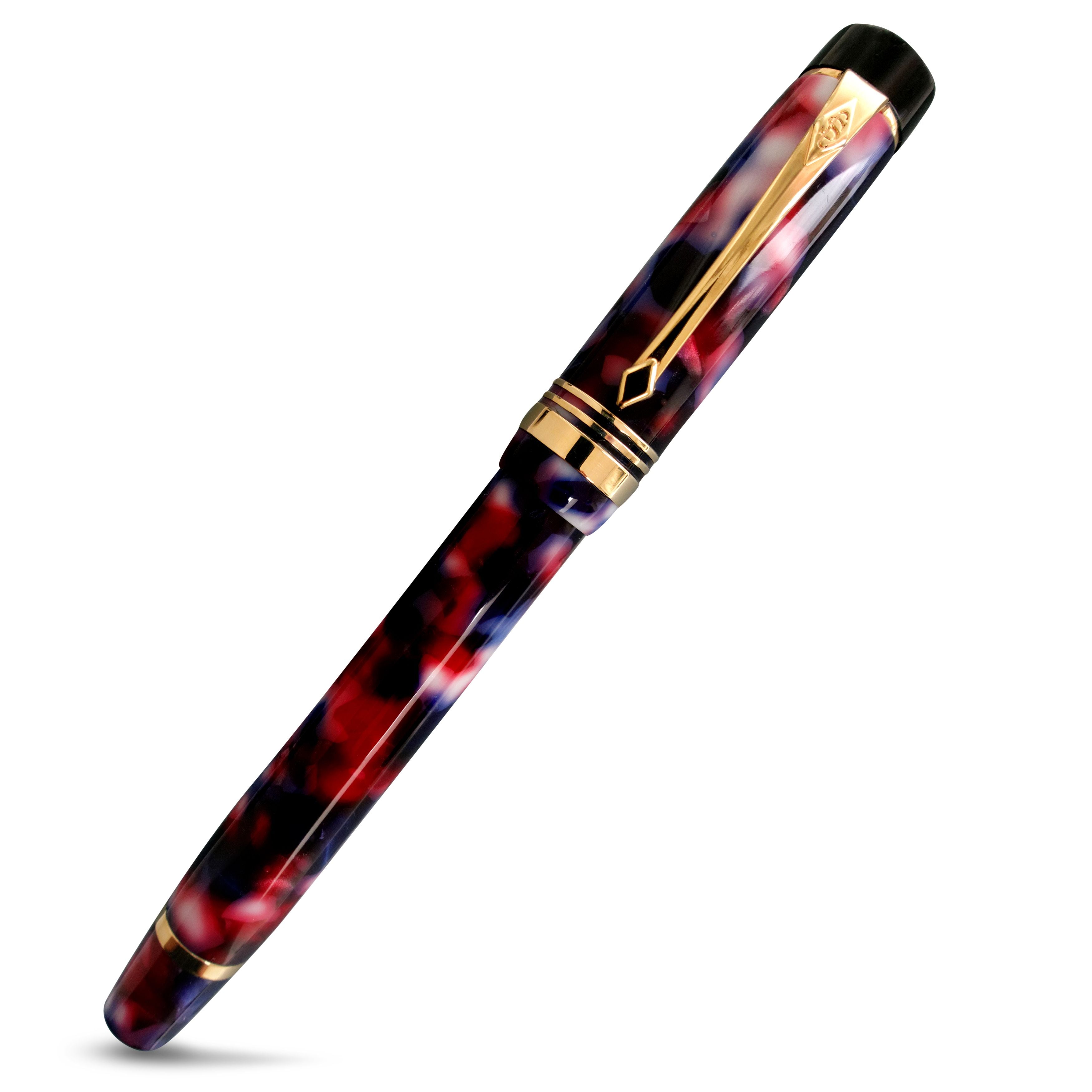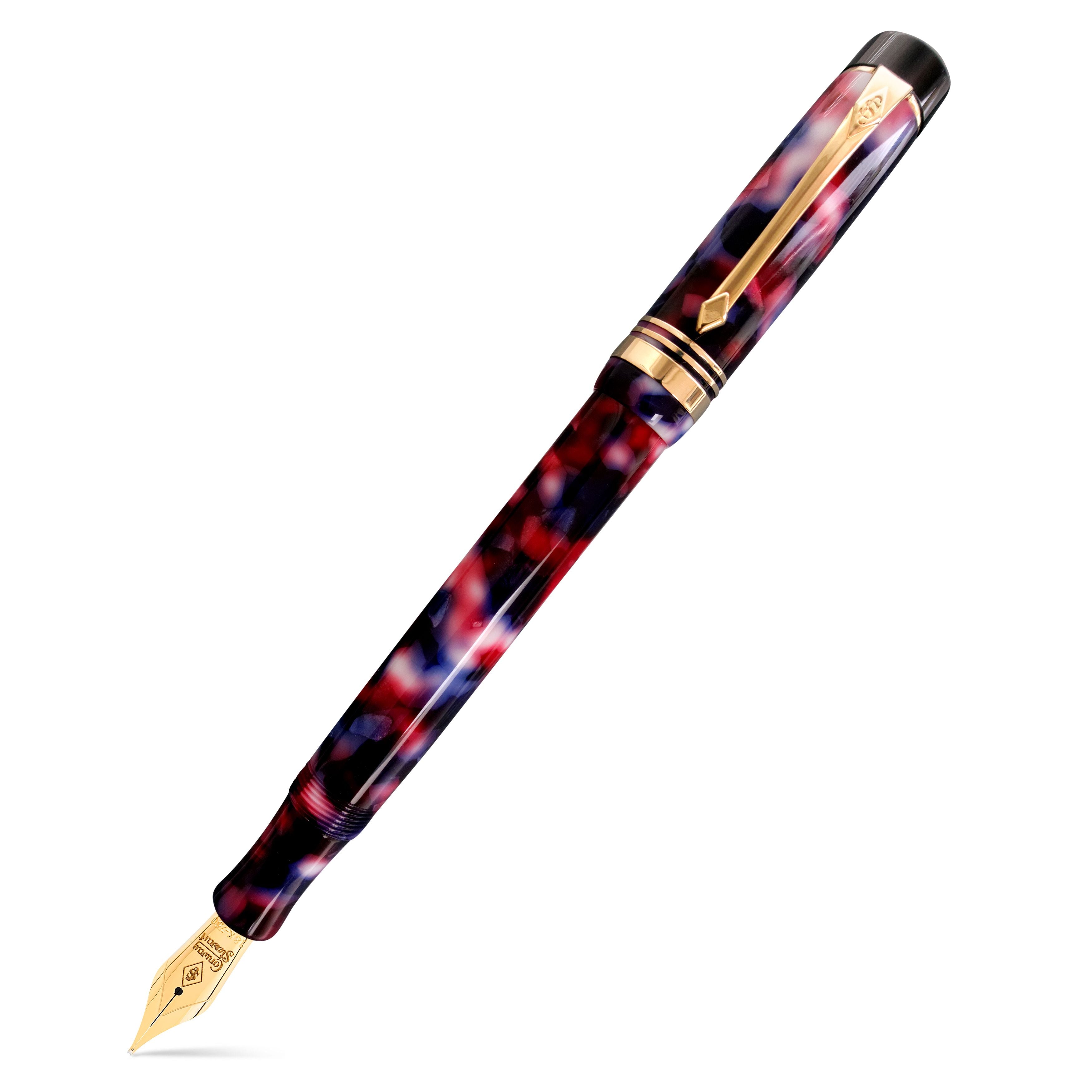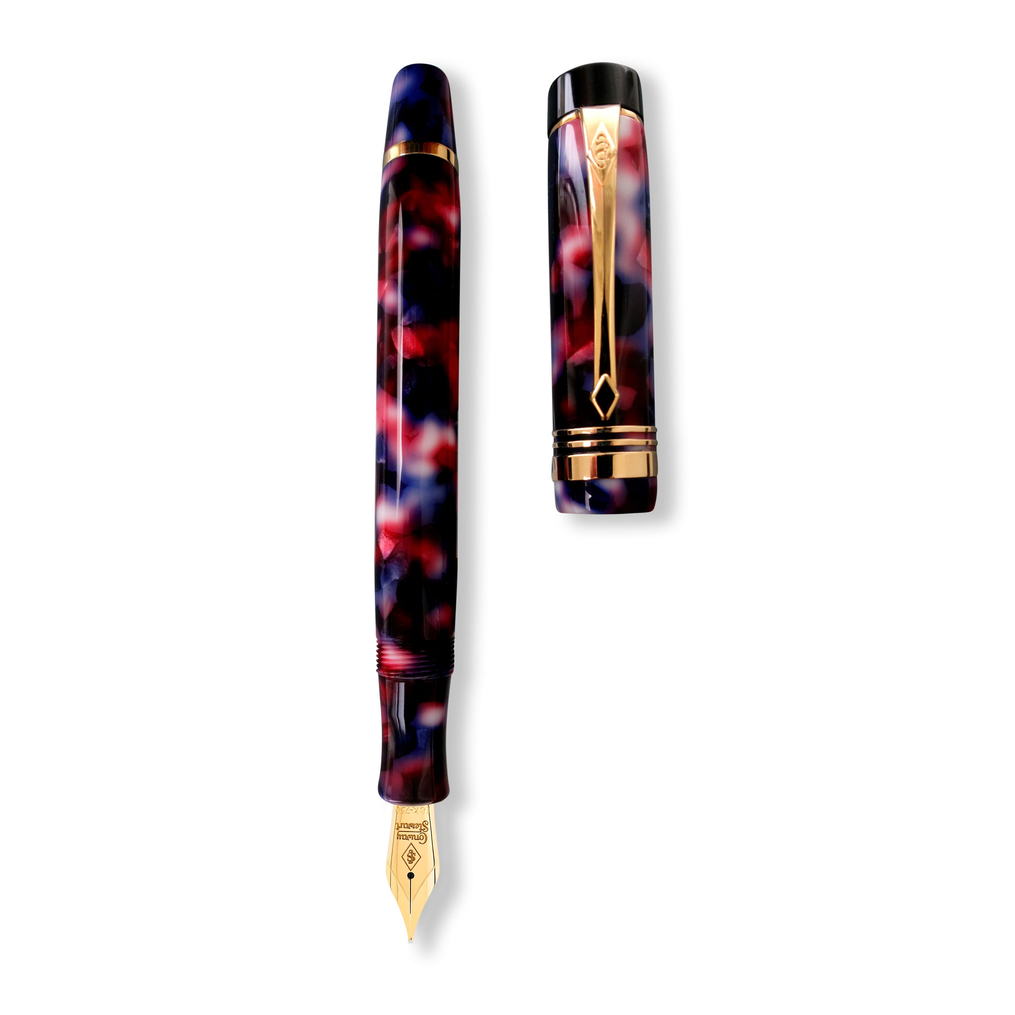 La nébuleuse Conway Stewart Nelson est un stylo à voir, avec seulement 15 disponibles pour les collectionneurs et les amateurs. L'arrière-plan des rouges, des bleus et des taches blanches crée un design époustouflant et unique qui s'oppose aux raccords en or massif. Chaque stylo est livré dans une boîte de présentation en cuir noir qui double comme un stylo porte vitrine, ce qui en fait une belle addition à n'importe quel bureau. Ne manquez pas votre chance de posséder un morceau d'histoire de stylo avec la Nebula Conway Stewart Nelson.