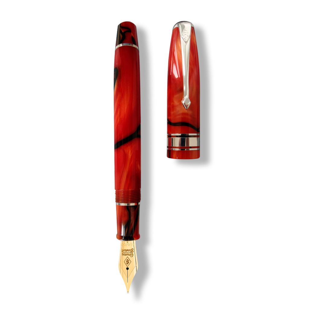 Présentation du Conway Stewart Series 100 Black Whirl - un acrylique rouge ardent mélangé à un tourbillon noir et orné d'anneaux de capuchon, de clip et d'anneaux de barillet en argent sterling. Ce stylo de taille moyenne est un classique intemporel, apprécié aujourd'hui pour son équilibre fin et sa facilité d'écriture, comme il l'était il y a plus de 60 ans. Le complément parfait à toute collection de stylos de luxe, chaque stylo est fait à la main avec une perfection sans faille et est livré dans une boîte de présentation en cuir noir qui sert également de porte-stylo. Avec seulement 2 restants dans cette couleur, il n'est pas étonnant que le motif Black Whirl soit très recherché par les collectionneurs de Conway Stewart.
