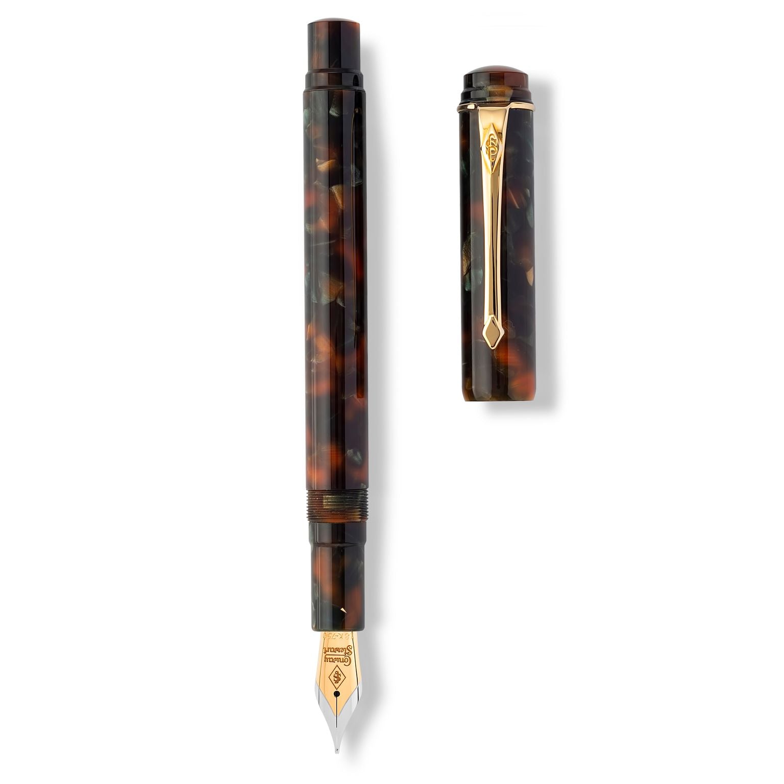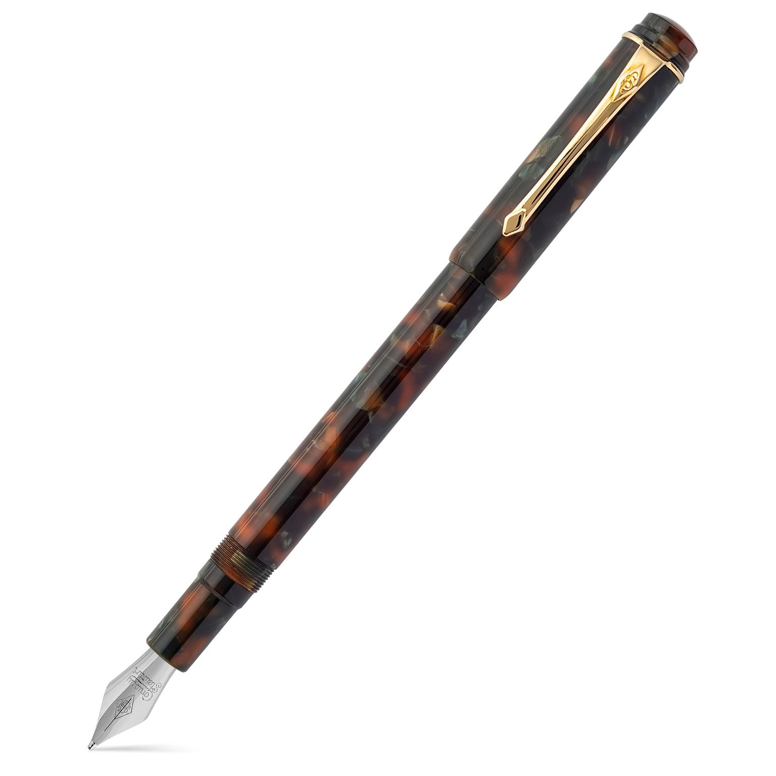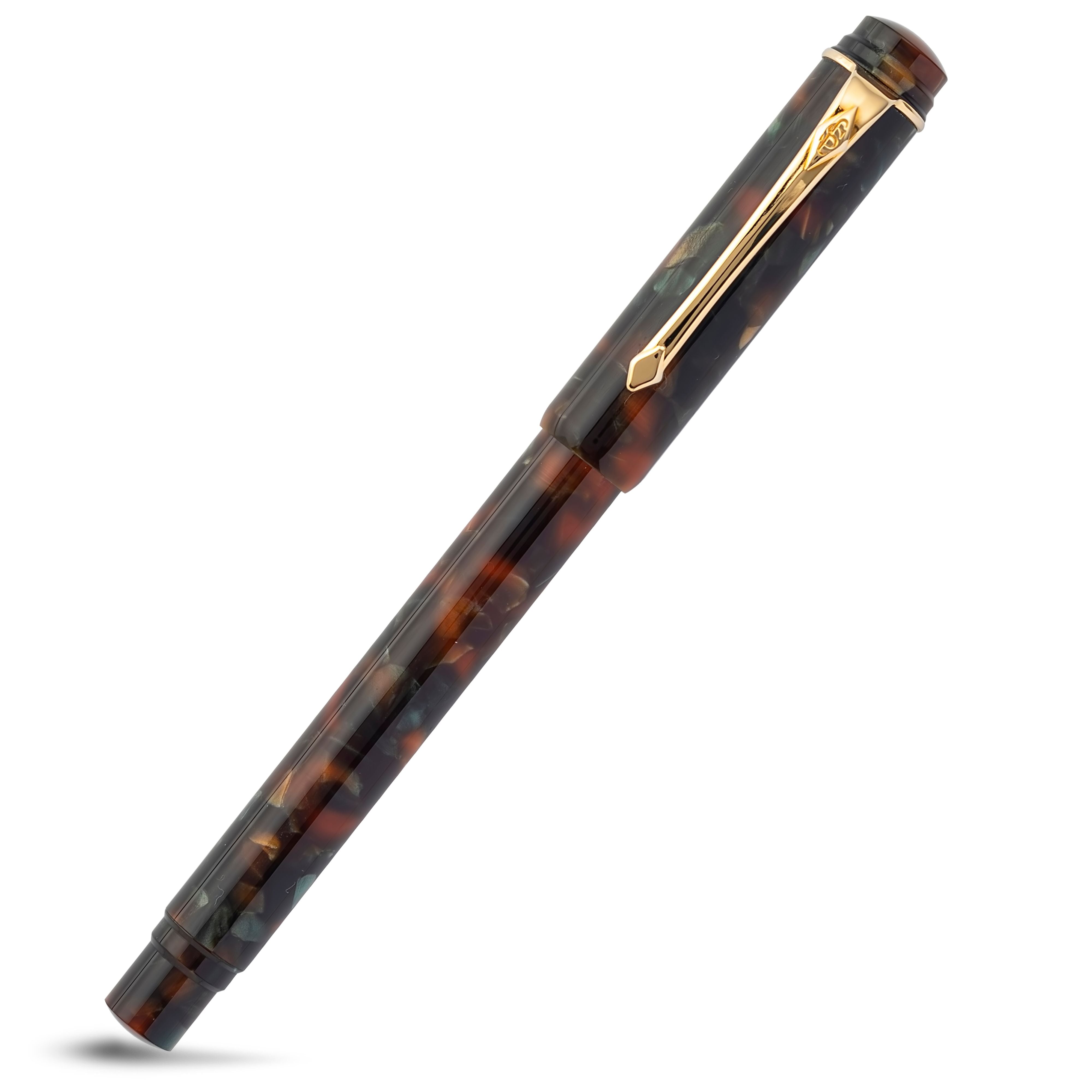 Le Conway Stewart Capulet Bracken est un stylo léger de taille moyenne parfait pour un usage quotidien. Lancé en 2013 en tant que modèle d'entrée de gamme pour la marque, il est rapidement devenu populaire en tant qu'option abordable pour les nouveaux venus dans le monde des stylos plume. Avec un choix de plume Conway Stewart SS authentique ou de plume drapeau en or 18 carats, le Capulet est polyvalent et fonctionnel. La boîte de présentation en cuir noir sert également de présentoir de bureau, ce qui en fait un ajout élégant à tout espace de travail. Pour les collectionneurs et les connaisseurs, la gamme Capulet offre une dernière chance d'ajouter ce stylo bien-aimé à leur collection.