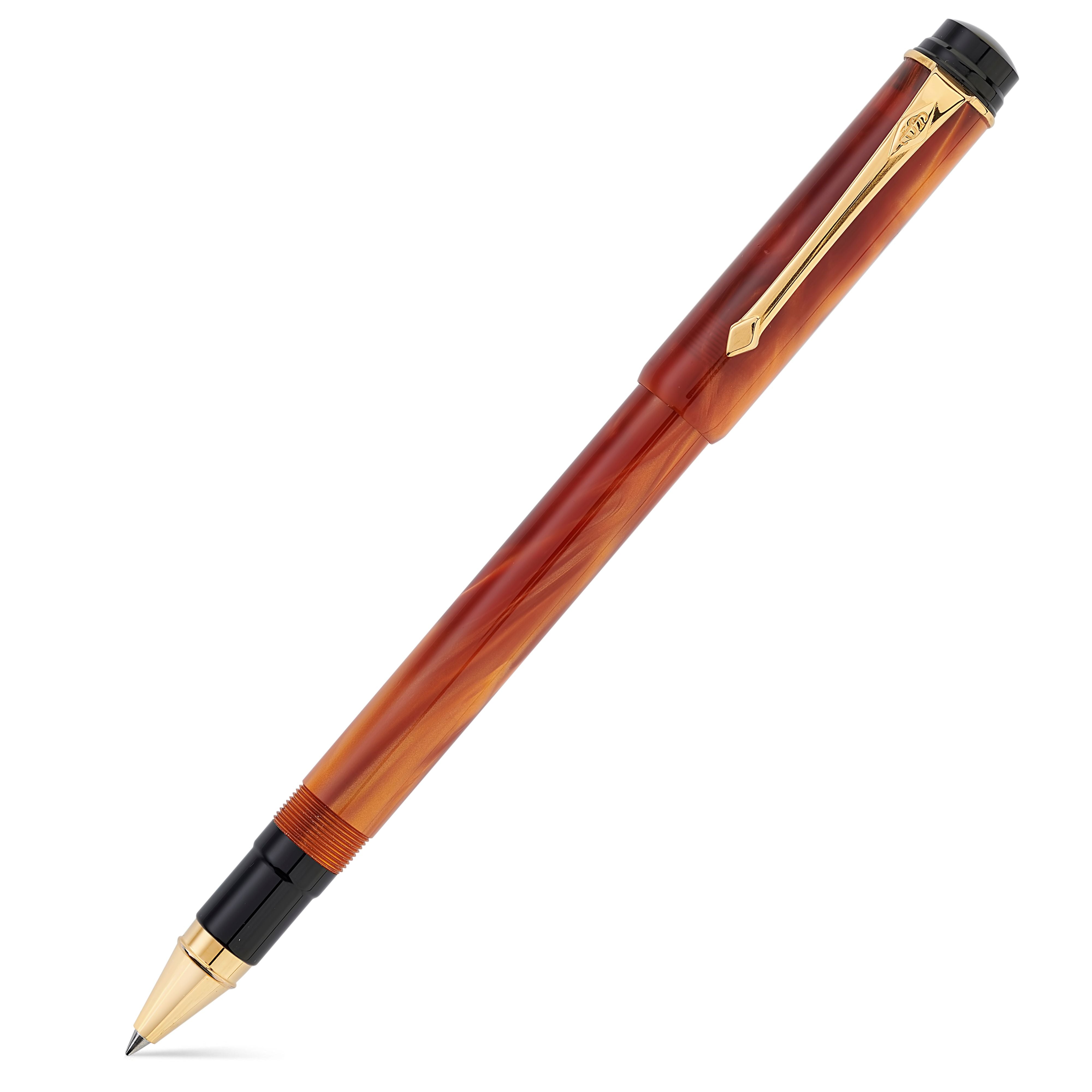 Le Conway Stewart Capulet Burnt Bronze est un stylo de taille moyenne en édition limitée, parfait pour un usage quotidien ou comme cadeau sur le thème d'Halloween. Cette édition spéciale est livrée avec une bouteille gratuite d'encre de couleur citrouille, ce qui en fait un excellent ajout à votre collection de papeterie fantasmagorique. Le Capulet est le modèle d'entrée dans le monde des stylos plume fabriqués par cette marque britannique, et chaque stylo est équipé d'une véritable plume moyenne en acier inoxydable Conway Stewart qui écrit magnifiquement. Le Capulet est également disponible en rollerball avec une partie plaquée or 23 carats, pour un set Halloween assorti. Que vous soyez fan de sorcières, de sorciers, de vampires ou de monstres, le Capulet Burnt Bronze est le stylo parfait pour mettre vos histoires d'Halloween sur papier. Chaque stylo est présenté dans une élégante boîte de présentation en cuir noir qui sert également de présentoir de bureau. Ne manquez pas ce stylo en édition limitée qui ne manquera pas de rendre vos célébrations d'Halloween plus spéciales.