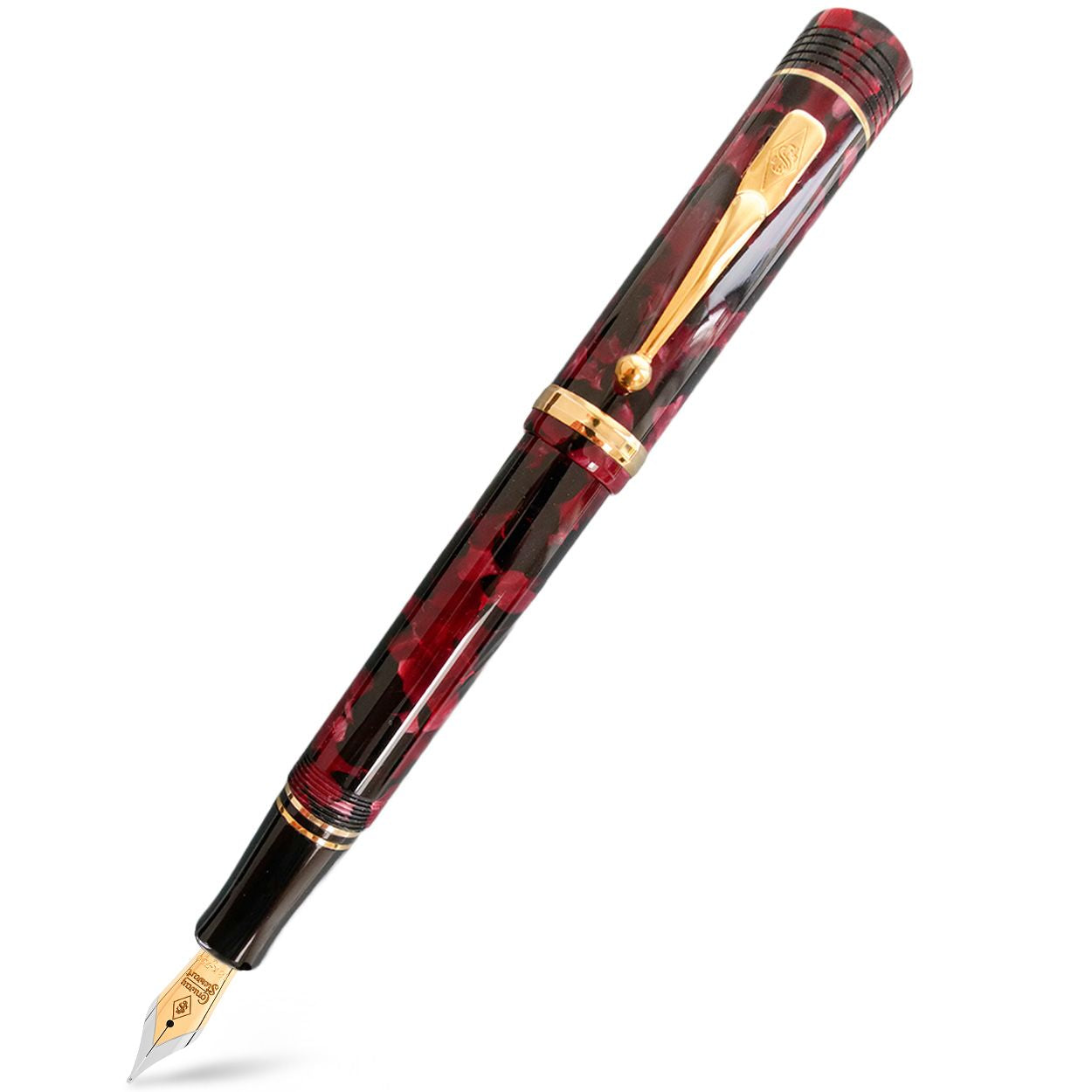 Le Conway Stewart Churchill Classic Claret est un stylo rare et impressionnant qui respire l'élégance et la sophistication. Avec seulement 15 stylos disponibles, c'est un incontournable pour tout amateur de vin rouge, avec ses rouges profonds mêlés de pourpre et de noir rappelant un bon bordeaux bordelais. Le stylo est rehaussé d'anneaux en or massif 9 carats, ce qui en fait une pièce maîtresse. Le Churchill Classic Claret est disponible en tant que stylo plume avec un choix de plumes extra fines, fines, moyennes ou larges en or 18 carats 2 tons, ou en tant que roller ou stylo à bille avec un choix d'encre bleue ou noire.