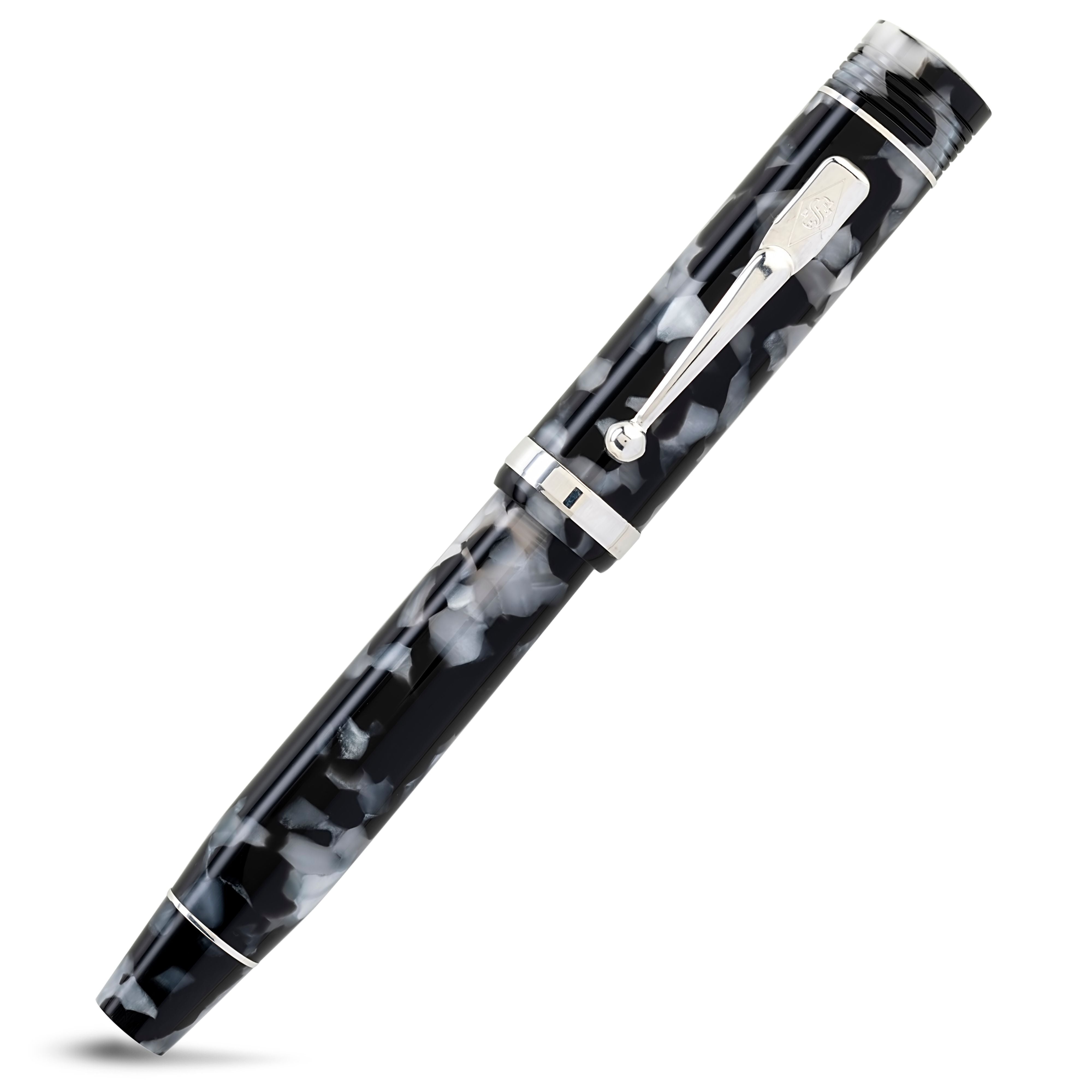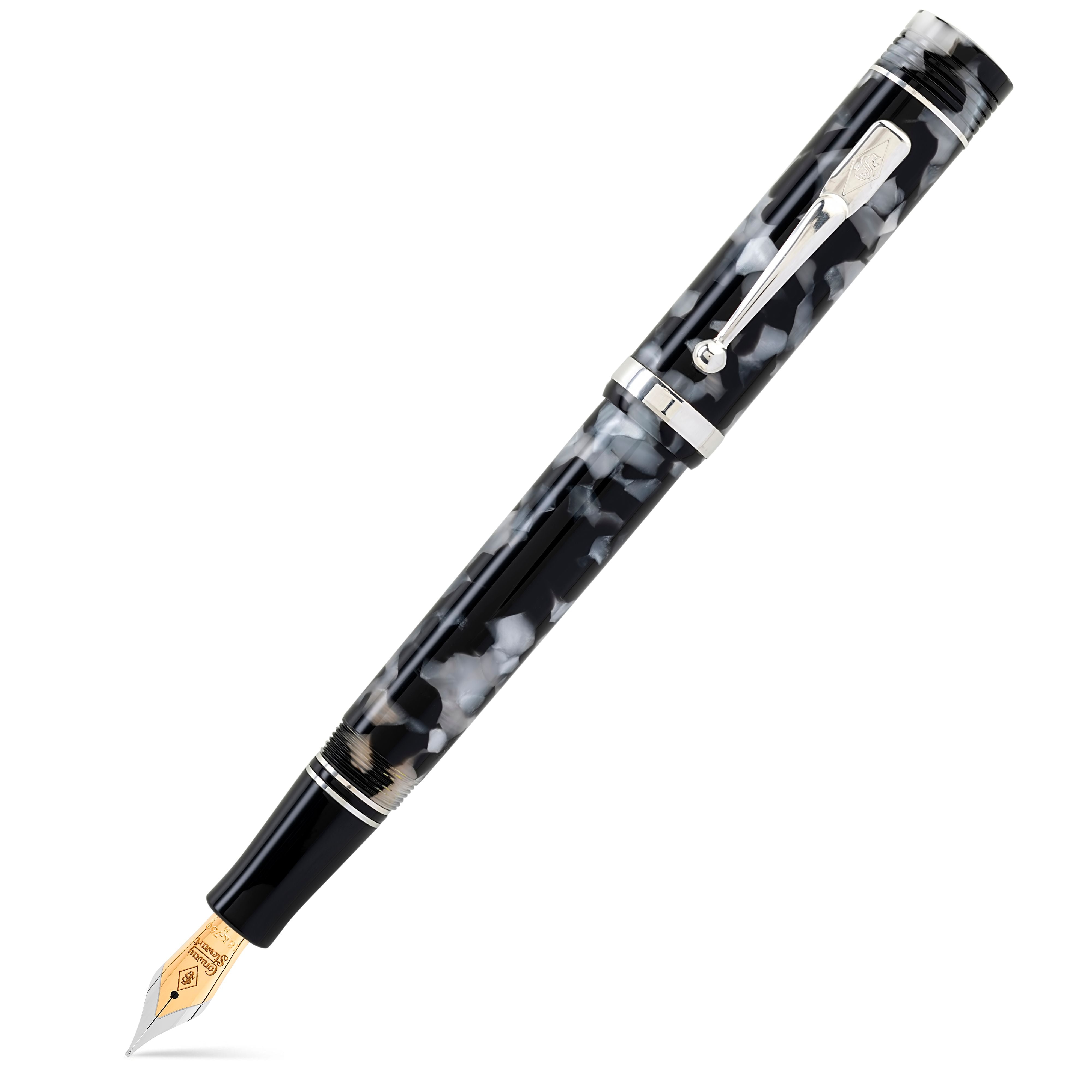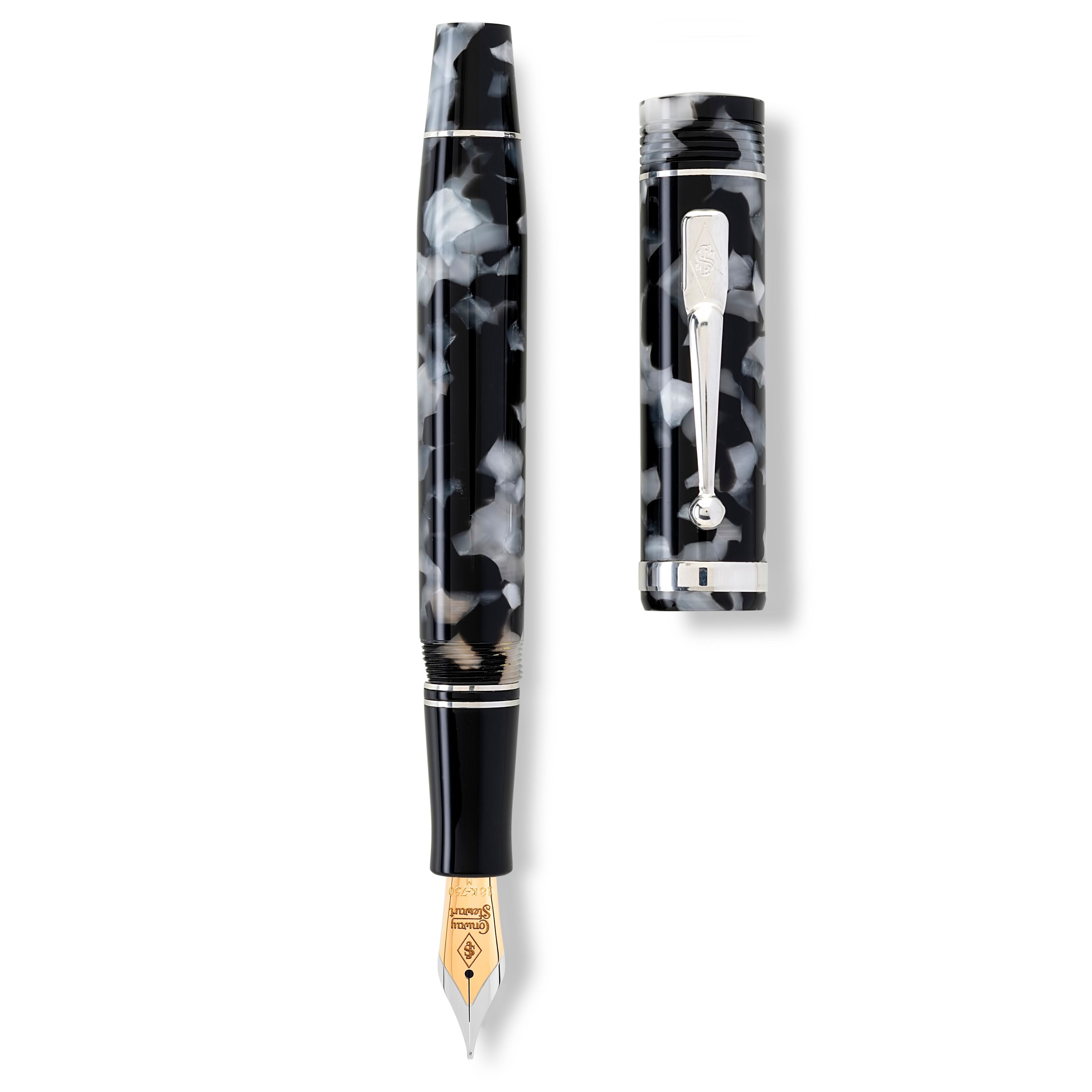 Le Conway Stewart Churchill Fresian 15 éditions limitées est un instrument d'écriture unique qui présente un beau mélange de résine de marbre noir, gris et blanc avec des garnitures en argent sterling. La couleur Fresian est emblématique et distinctement anglaise, faisant de ce stylo un ajout délicieux à toute collection. Chaque stylo plume est emballé dans une élégante boîte de présentation en similicuir noir, qui peut également être utilisée comme présentoir de bureau élégant. Complet avec un certificat d'authenticité, un guide de l'utilisateur Conway Stewart et un chiffon de polissage spécial anti-ternissement, ce stylo est sûr d'éblouir et d'impressionner.
