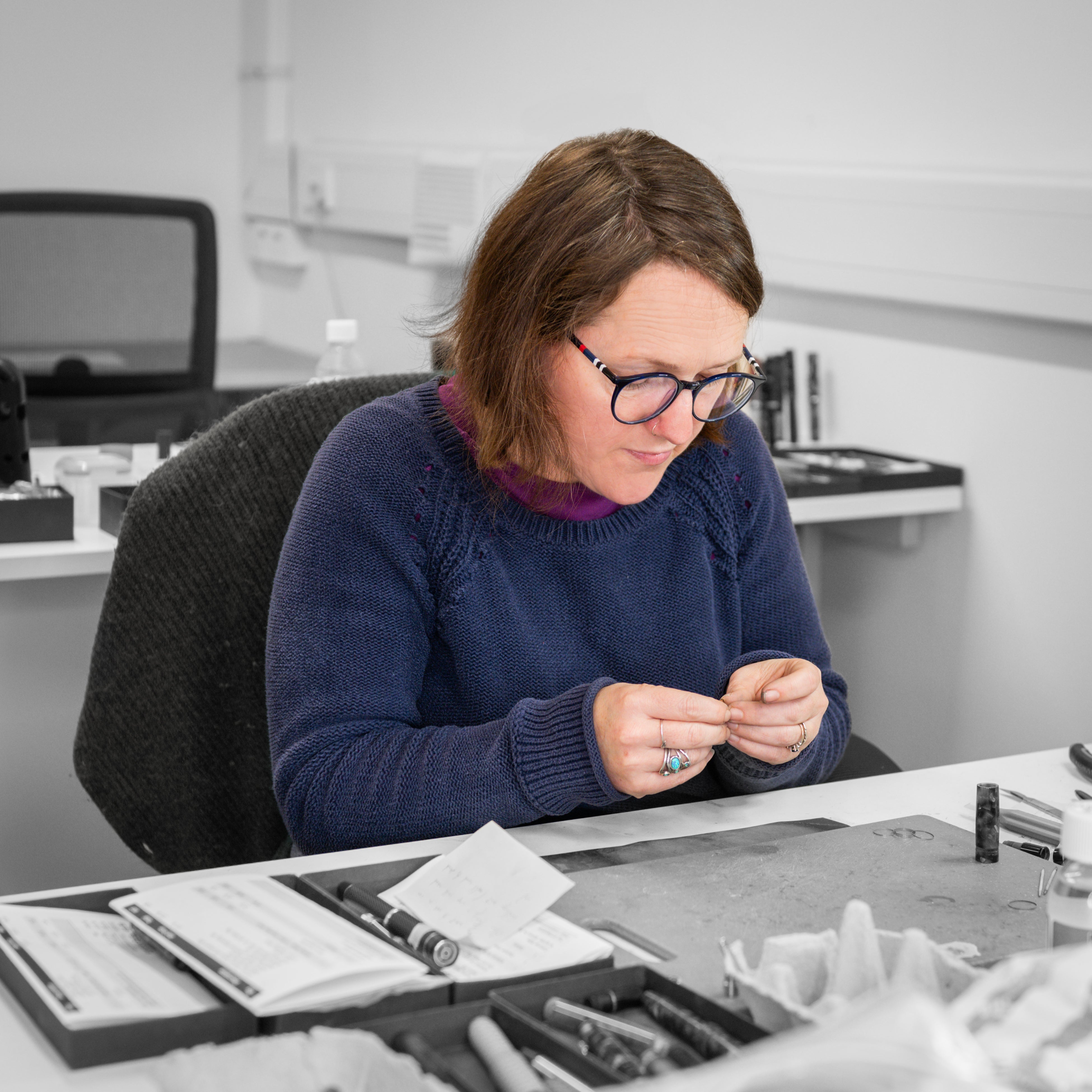 Sophie has a strong academic education, with a degree in Archaeology and an MSc in GIS and Spatial Analysis. Sophie spent several years working as an archaeologist and enjoys practical work. Sophie is also a musician and trained woodwind repairer and applies these fine tool skills and attention to detail to her role at Conway Stewart where she is an expert at assembling our fine pens.