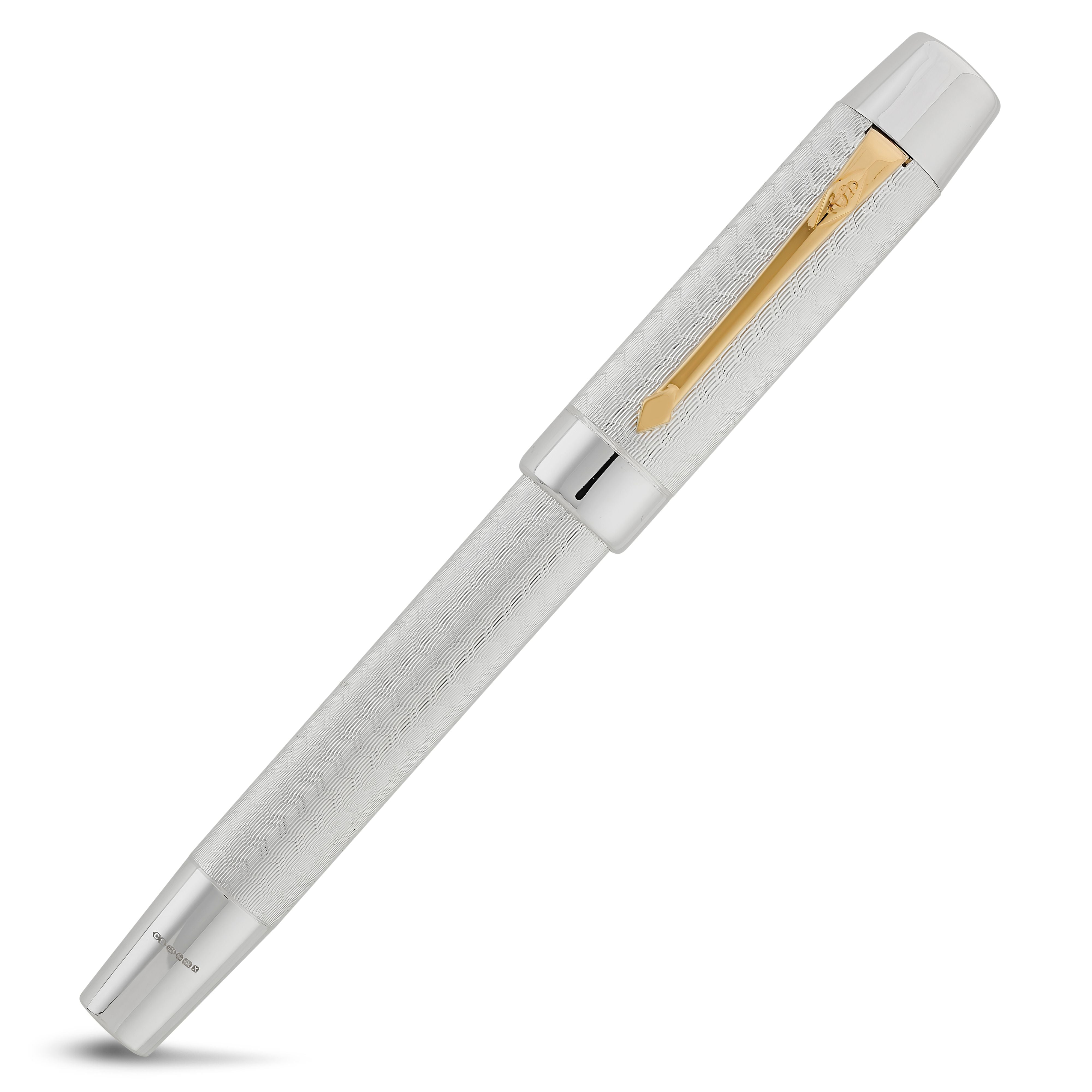 コンウェイ・スチュワートの限定版スターリングシルバー ペンでエリザベス女王 2 世のプラチナ ジュビリーを祝いましょう。キャップにはアッセイオフィスのプラチナジュビリー記念マークが刻印され、ボディとキャップには堂々とした模様がエンジンターンで施されています。ペンは70本のみしか入手できないため、希少なコレクションアイテムです。 18ct ゴールドのツートーン コンウェイ スチュワート ペン先が取り付けられたこのペンは、万年筆またはローラーボールとして利用でき、多用途で機能的なアクセサリーになります。