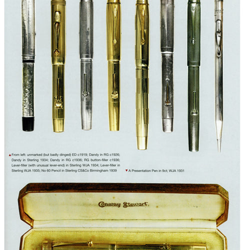 赫尔细致地记录了康威·斯图尔特的历史和发展;详细介绍了以前未发表的材料、公司内部文件和信件、原型、专利、注册商标、使用的材料(包括赛璐珞和酪蛋白)、覆盖层和标志、印刷广告、自 1905 年以来所有 Conway Stewart 型号的开发和设计等等!