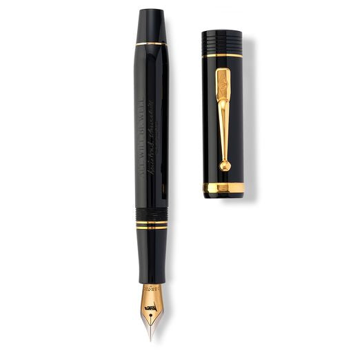 康威·斯图尔特 (Conway Stewart) 只向我们收藏家俱乐部的会员提供庆祝钢笔,并附有新书《Fountain Pens for the Million — Conway Stewart 1905–2005》的精装本,由作者斯蒂芬·赫尔 (Stephen Hull) 亲自签名。 收藏家俱乐部钢笔和书籍礼品套装每种型号限量 50 件,并且该书将具有与钢笔相匹配的限量版编号。 康威·斯图尔特 (Conway Stewart) 很高兴地宣布推出庆祝限量版系列的前两款特殊钢笔。庆典系列是利用我们两种最受欢迎的现代钢笔设计 ——丘吉尔和惠灵顿的平台推出的。该型号以温斯顿·丘吉尔爵士命名,是康威·斯图尔特长期以来的旗舰设计。 丘吉尔笔在手感和外观上雄伟而永恒,一直是那些喜欢庄重、超大书写工具的人的最爱。 Celebration Churchill 是我们旗舰型号的绝佳典范,采用闪闪发光的黑色树脂制成,其雕刻图案的灵感源自 Conway Stewart 在 1920 年代推向市场的早期硬橡胶钢笔。这种波浪图案贯穿笔盖和笔杆的整个长度,笔盖顶部和笔杆末端经过光滑抛光以突出设计。 Churchill...